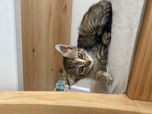 Yaklaşık 2 aylık, çok enerjik ve oyunsever bir yavru. Başta iyileşince sokağa bırakmayı düşünüyorduk ama işitme kaybı nedeniyle dışarıda yaşaması tehlikeli olur. Bu yüzden ona ömürlük yuva arıyoruz.