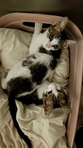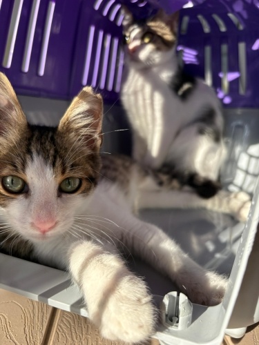 Teo(yeşil gözlü💚) ve Leo(bal gözlü🧡) kısırlaştırılmış iki kardeş yavrudur. Kucağı çok severler, hep karnınıza ya da göğsünüze çıkıp uyumak isteyen minik iki yavru, ayrıca geceleri de sepetlerinde birlikte uyuyorlar🥹 Teo ve Leo'ya yuva araması sürecinde geçici yuva olduk ama kendi büyük kedilerimiz kıskanıp onları rahatsız ediyorlar(dövüyorlar😅). Bu nedenle onlaea güzel bir aile yuva arıyoruz🩷