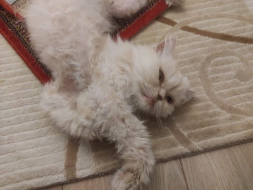 Issız bir yolda zor durumda bulduğumuz yetişkin dişi kedimize ömürlük yuva arıyoruz. Yaklaşık bir haftadır evimizde bakıyoruz; iç ve dış parazit tedavileri yapıldı, tüylerine bakım yapıldı. İştahı yerinde, genel durumu gayet sağlıklı.