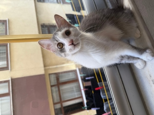 Doğduğunda en geç onun gözleri açılmış olmasına rağmen en hareketli bebek oydu ve gözleri kapalıyken kardeşleriyle oyun oynardı. İsminin Savaşçı olmasının sebebi bu. Şimdi ise tek gözünde doğuştan kaynaklanan %80 görme kaybı var. Veteriner hayatını hiçbir şekilde etkilemeyeceğini söyledi ki etkilemiyor. Oldukça sevgi dolu bir kedi. Yattığınız anda yanınıza sokulup kalıyor. 5 aylık. İç dış parazitleri yapıldı. Kuru mama ve kum alışkanlığı var. Öğrenciyim ve evde 7 kedi var. Artık kaldıramıyorum ve asla sokağa gitmesini istemiyorum. Tekir oldukları için sahiplenen çıkmadı.