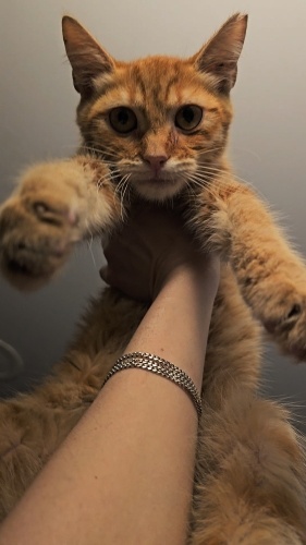 Güneş kısır ve çipli, 6 aylık erkek yavru. Uysal karakterlidir, kendini sevdirmeyi ve kucağı sever. Yuva arama sürecinde Güneş'e geçici yuva olduk ancan kendi kedilerimiz ona rahat vermiyor, kendi yuvasına kavuşmayı bekliyor🧡