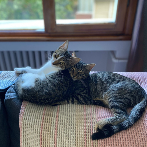 Dört buçuk beş aylık, dişi ve erkek… İkisi de korumamız altına alınan annesiz mayıs bebeklerinden 🙏🏻🧶 İkisi de yetişkin kedilerimizle uyumlu, ikisinin de klinik kontrolde iç dış parazit uygulamaları yapıldı…
