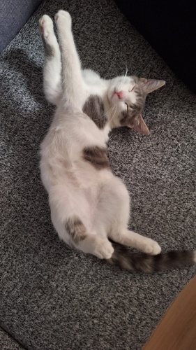Ümraniye/İSTANBUL'dayız. Kedimiz 4 aylık yavru, erkek ve beyaz-gri tekirdir. Mahallemizde hayvanlara iyi davranılmadığı için doğduğu andan itibaren annesi ve kardeşleriyle birlikte sütten kesilene kadar geçici olarak evimize almıştık, sahip bulamaz ise sokağa gitmek durumunda kalacaktır. Sokağı bilmediği için maalesef son ümidimiz ona burada kalıcı bir yuva bulabilmektir.