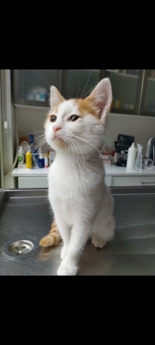 Kliniğimizde tedavi ettiğimiz yavru kediyi sahiplendirmek istiyoruz.(Sadece gözlerinde ödem vardı damlalarını oldu ve iyileşti) Dişi yaklaşık 3 aylık.İç dış parazit aşısı yapıldı.Kuru ve yaş mama yiyor.Kum eğitimi var.Çok uysal ve insan canlısı asla tırmalama ya da saldırgan davranışları yok.Oyun oynamayı ve kendini sevdirmeyi çok seviyor.Bu güzel yavruya evinizi açıp ona yuva olur musunuz 😊🥰