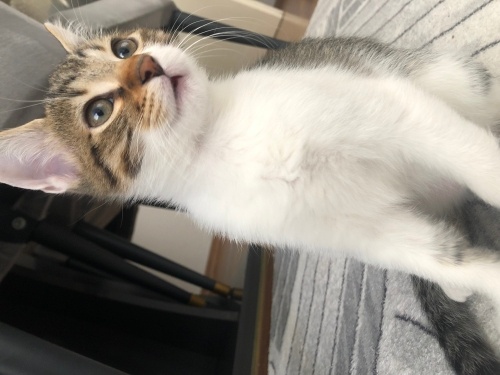 Samsun’da tekir 3 aylık yalnız kalamıyor kardeşlerinden ayrıldı insan olmayan yerde üzülüyor çok insancıl sevecen çok sakin yeri gelince oyuncu şuan geçici yuvasında acil yuva aranıyor