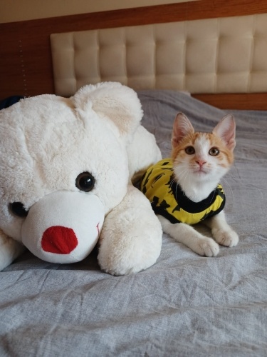 3 aylik civari dunya tatlısi minik bir kız ...bahcede bulundu ..simsiyah bir haldeydi. Muhtemelen araba motoru ile gelmiş. Inanilmaz açtı. Klinige alındı Parazit uygulamalari ve gerekli tedavilerinin ardından gecici yuvaya geldi. ..evde oylesine mutlu, oyle sevecen bir bebek ki. .bu mutlulugu devam etsin , sicacik yuvasina kavussun istiyoruz. Gunes icin istanbul ici ,ömurluk aielesini ariyoruz