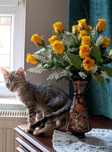 Evde doğdu el bebek gül bebek evde büyüyor. İç ve dış parazit uygulamaları yapıldı. Kum eğitimi var ve kuru mama yiyor. Surmeli sürmeli muhteşem gozleriyle bakısı iinizi ısıtır. İnsana düşkün, sevgi dolu, uysal mırıl mırıl bir can. Ömürlük düşünen, sevgisiyle ve şefkatiyle birbomur sarmalayip güvende tutacak pamuk kalpli annesi siz olur musunuz? İletişim tel:0535 680 06 89