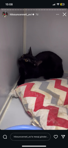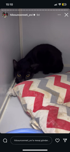 Bu yavruyu 2 ay önce kadar sokakta sürünerek yürümeye çalışırken bulduk. Hemen kliniğe götürdük. Röntgenleri çekildi 1 bacağı kırık ve felçli diğer bacağı da çıkmıştı. 2 kere ameliyat oldu. Felçli kırık bacağı ampute edildi. Diğer bacağı kaynadı. Aynı zamanda kısırlaştırma operasyonu da olmuş oldu. Şuan çok sağlıklı 3 bacaklı olması dışında hiçbir sağlık sorunu yok. Zaten ev ortamında bu ona hiçbir engel teşkil etmeyecektir. 5-6ay civarı erkek Bombay cinsi bir yavru. Engelli kedi bakmak ayrıcalıktır size çok bağlı olurlar ve siyah kediler şans getirir. Sizde ona bir şans verir misiniz O hayata biraz şanssız başladı ama bundan sonrası için şansı güzel olsun. Ücretsiz sahiplendirilecektir. Karma aşıları da yaptırılacaktır. Tedavi mama vs için hiçbir ücret talep edilmeyecektir.