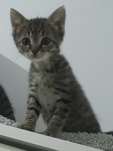 Evimizde biri yaşlı ve kanser hastası toplam 3 kedimiz olduğundan ne yazık ki bizim sahiplenmemiz imkansız. Bir odada kapalı duruyorlar kardeşiyle birlikte. Tekrar bahçeye bırakırsak buradaki kedilere hep olduğu gibi ya araba altında kalacaklar ya da köpekler parçalayacak. Annesinden bir şey öğrenemediği ve eve alıştığı için de tekrar dışarıya bırakmak onu ölüme terk etmek demek.