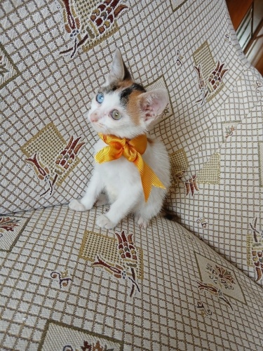 Çok sevimli ve evcil minikler 🐱 2aylıklar...2 dişi , 1 erkek... Bir göz mavi,bir göz yeşil iki bebeğin.