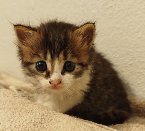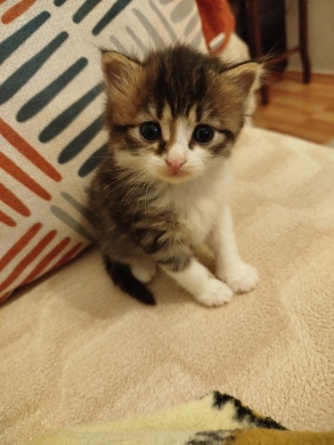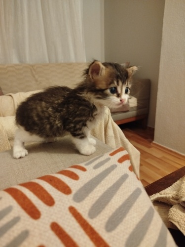 Lokmayı 1 hafta önce, yanımızdaki evin bahçesinde buldum, sürekli ağlıyordu, çok ıslanmıştı ve açtı, o kadar küçüktü ki annesiz yaşar mı emin değildim, hemen bebek sütü ve biberon aldım ama biberonu tutamadı, şırınga ile birkaç gün besledin sonra biberona alıştı, hala çok küçük ama tuvalete alıştı, arada kuru mama da yiyor, çok tatlı ve uyumlu, ömürlük yuva arıyor, takip şartıyla sahiplendirilecektir.