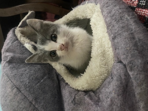 Sokakta yağmurun altında kalmış tir titrerken bulduk garibimizi. Annesini kaybetmiş, üşümüş perişan haldeydi. Çok sakin, ısırma huyu olmayan çok sakin ve sevecen bir bebek. Evdeki yaşlı kedim nedeniyle ben yuva olamıyorum, sokakta da hayatta kalma şansı yok. Kendisine ömürlük yuva arıyoruz.