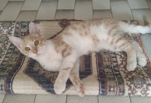 Bu yakışıklık çocuk, kedi baktığımız için kapımızın önüne atıldı ve henüz 4.5-5 aylık civarlarında bir erkek. Ev hayatına alışkın, insana alışkın, çok neşeli, oyuncu, hiç tırnak çıkarma huyu olmayan bir kedi. Kuru mama yiyor, tuvalet eğitimi var. Kendisi ne kadar çok sevsek de onunla birlikte evdeki kedi nüfusu 10’a çıktığı için sahiplendirmek zorundayız. Onun ömürlük yuvası olursanız elimizden gelen yardımı yapmaya hazırız. (Sadece Ankara içi sahiplendirme yapabiliyoruz.)