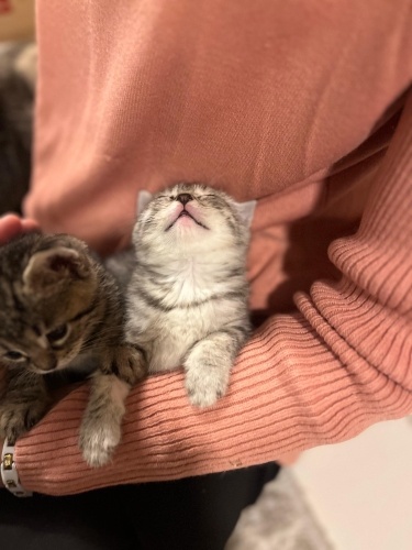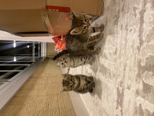 Yavrular şu anda 32 günlük, sağlıklılar ve kendi başlarına mama yemeye başladılar. Hepsi çok sevimli, oyuncu ve sevgi dolular. Onlara güvenli, sıcak bir yuva bulabilirsek gerçekten çok mutlu olacağım.
