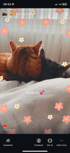 Bebeğimin alerjisi nedeniyle kedilerimi sahiplendirmek zorundayım. İkisini asla ayıramam aynı eve gitmek zorundalar. İkisini beraber sahiplenmek isteyen kişiler yazabilir.