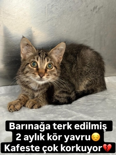 2 aylık dişi kör yavru bu halde barınağa terk edilmiş. Kafeste çok korkuyor sürekli ağlıyor. Gidecek hiçbir yeri yok. Onu kaderine terk etmeyelim barınakta stresten ölmesin lütfen Diğer şehirlere nakille gönderebilirim yeter ki yuvası olsun