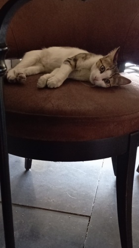 Çalıştığım kafede bulunan çok sevimli bir kedim var. Aşırı sevgi bağımlısı,çok uysal ve çok minik. :)) Tam bir oyun bağımlısı. Sürekli saklanıp beni korkutup oyun oynama derdinde aşırı komik ve sevimli bir kedi. Çalıştığım için çok fazla ilgilenemiyorum ve bu yüzden sahiplendirmek istiyorum