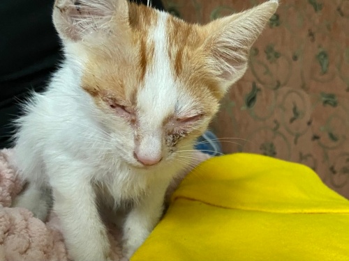 Bir gözü görmüyor diğer gözü için tedavi görüyor görme ihtimali yüksek. 3 aylık erkek yavru kedi. Bu şekilde bu soğukta dışarda yaşayamaz. Lütfen onunla ilgilenebilecek kişiler iletişime geçsin..
