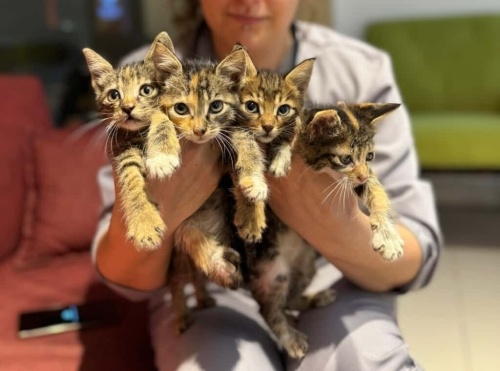 Annelerine araba çarpınca 4 yavru yetim kaldı. 3 kız 1 erkek. Hemen veteriner kliniğine alındılar. Tedavileri, içi dış ve karma aşıları yapıldı. Çok sağlıklı ve çok oyuncular. Hepsi kucak delisi. Ömürlük yuvalarına gitmeye hazırlar. Bana gelsin, evladım olsun, ömrünce bakarım diyorsanız, hemen arayın.