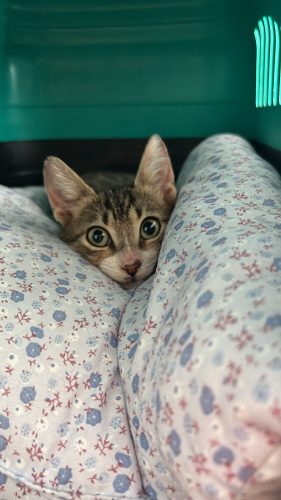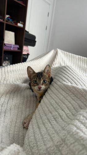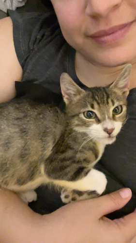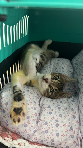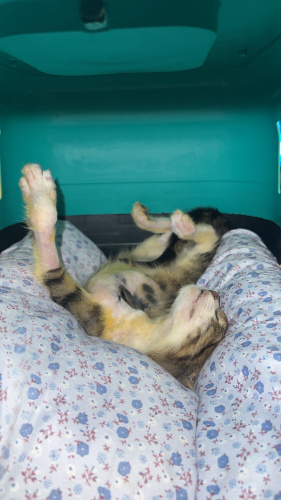 İsmi Victor. Yurtdışına giderken 8 şeritli yolun tam ortasında çelik bariyerlerin orda gördüm. Araba çarpmış, çenesi kırılmış, patisi kurtarılamayacak hale gelmiş, günlerce o halde gezmiş, vücudunda kan kalmamış, açık yaralarından ötürü kurtlanmış, üstünde canlı canlı kurtlar gezmiş ve her yeri fıkır fıkır pire kaynamış. Dönüp veteriner kliniğine bırakıp yoluma devam ettim. 1 küsur ay veterinerde kaldı. Patisi ampute edildi. Çenesi düzeltildi. 5 ayrı sorunla uğraşıldı. Hala kan ilacı kullanıyor. Antibiyotik tedavisi bitti. Kilo aldı. Keyfi ve iştahı yerinde. Vücudundaki açık yaraları kapandı ama ruhundakiler henüz kapanmadı. Her şeyden çok korkuyor, size güvenmesi zaman alır ama güvendikten sonra yanınızdan ayrılmaz. Dünyaya gelir gelmez başına gelmedik kalmayan minik sincabım için ona layık bir aile arıyorum. Tahmini 3-4 aylık artık engelli bir bebiş kendisi. Kısırlaştırma ve takip şartı ile verilecektir.