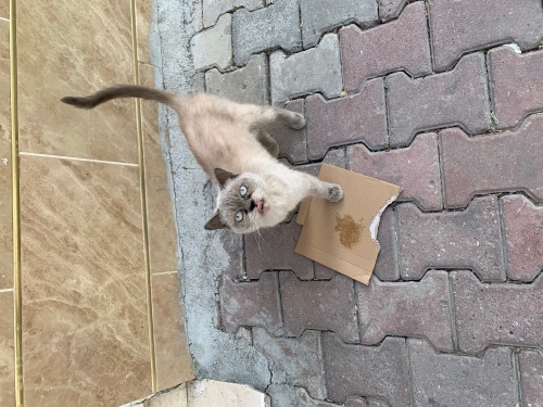 Bu güzel cam gözlü maviş kızımızı sokakta perişan bir hâlde buldum. Üstü bit pire içindeydi, tüyleri cılız cansız, karnı içeri göçük çok zayıf bir durumdaydı; anemi, alerji, yara bere ve enfeksiyonla mücadele ediyordu. Bir buçuk ayı aşkındır benimle, gereken tedavilerini ve aşılarını yaptırdım. En iyi mamalarla besledim, 2,5 kg’dan 3,8 kg’a kadar çıktı. İnanın bir odada sessiz sakin yaşıyor, sesi beni görene kadar doğru dürüst çıkmıyor; kendini sevdiren, dişi, ikinci kedi olmaya uygun karakterli 2 yaşlarında cins bir kedi. Tedavi ve aşı ücreti talep etmiyorum, ona ömürlük bir yuva arıyorum. Lütfen yardımcı olun, odamın engelli bir hayvan için boşalması gerekiyor.