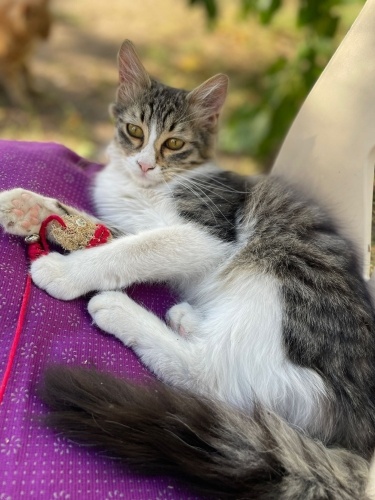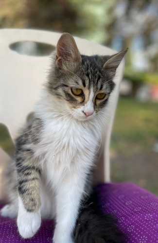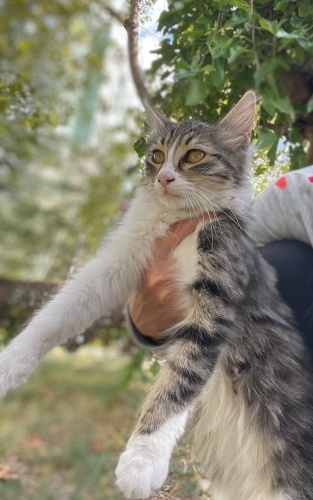 Can, Norveç Orman ve tekir kırması oğlan. 4-5 aylık civarı. Kum eğitimi var. Kuru ve yaş mama yiyor. İç-dış parazit uygulamaları var. İnsan canlısı, kendini çok güzel sevdiriyor. Kucak delisi, hareketli gurgur bebek. Diğer kediler ile arası gayet iyi.