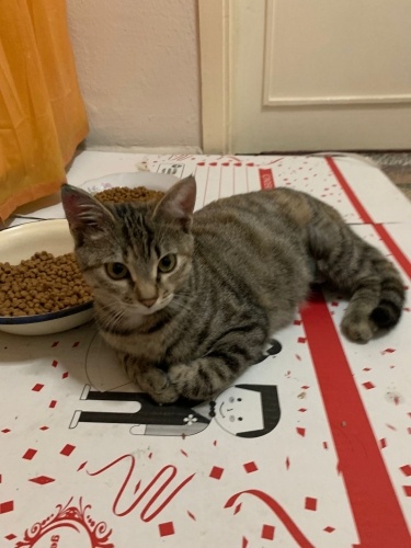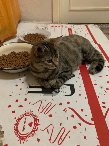 Tahin evimizin önünde beslediğimiz dişi bir kediş. İnsanlara ve diğer kedilere aşır alışkın. Yeni kısırlaştı ve şuan için geçici bir yuvada kalıyor. Kum eğitimi var. İç dış parazit, kuduz aşısı yapıldı. Ona ömürlük bir yuva arıyoruz