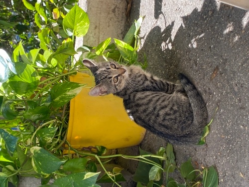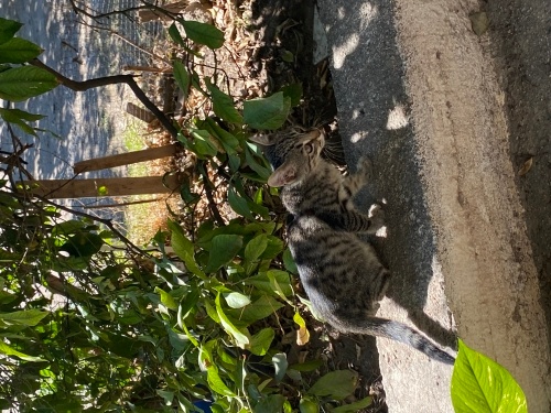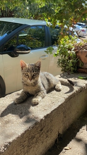 Bizim bahçemize sık sık yavru kedi bırakılıyor veya kendileri geliyor kaynağını bilmiyoruz. Hepsine mama ve su veriyoruz fakat buradan taşınacağız ve sahipsiz kalacaklar . Bu kedi de birkaç gün önce geldi ve bir bacağı yok , fakat yaralı görünmüyor iyileşmiş görünüyor genel sağlığı yerinde görünüyor.Diğer yavru kediyle hoplayıp zıplamayı çok seviyor.Cinsiyetinden emin değilim biraz korkak üstüne gidip ürkütmek istemedim tutamadım.