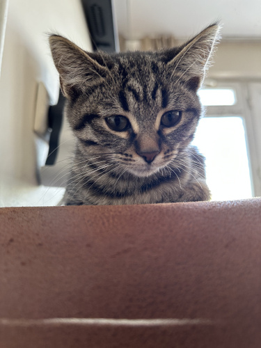 Ankara Cankaya bolgesi. Disi 3-4 aylik, veterinerde kontrolleri yapilmis, sapasaglam. Sakin bir kedidir, ama kardesiyle filan oynamayi ya da hareketli olta tarzi oyuncaklarla oynamayi sever. Siz otururken ya da yatarken yaniniza ya da ustunuze gelip oturmayi sever. Isirmaz, tirmalamaz, cok cana yakindir. 2 kardesler, isterseniz ikisini birden sahiplenebilirsiniz. Evinizi neselendirirler. Kuru mamayi sever, yemek konusunda hic secici degildir. Kum kullanmada hicbir sorun yasamamaktadir.