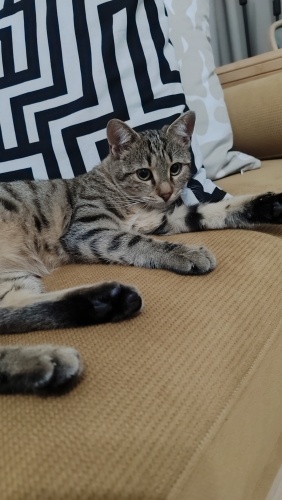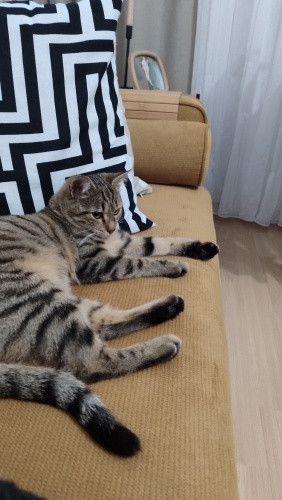 5 aylık, dişi,kum kullanıyor, kuru mama yiyor.İnanılmaz sevimli bir tip💜İnsan görünce gurlamaya başlar,hemen göbeğini açar...İnsana teması çok seviyor, siz öpünce resmen mest olan, kucakta uyumayı çok seven minnoş. Isırma,tırnaklama sıfır.Uyumluda, benim kedilerime hemen uyum sağladı.Dışarıda sürekli ağlıyordu,dayanamadım eve aldım.Lütfen sokağa dönmesin, dışarıda yaşayamayacak kadar savunmasız ve korkak🥺 Kedim aşırı stresli sürekli sıkıştırıp dövmeye kalkıyor....