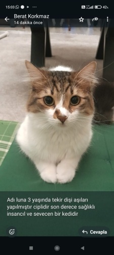 Luna 3 yaşında.. çipli.. Kuru mama yiyor.. çok seveceksin oyuncu.. ona ömürlük yuvasını arıyoruz