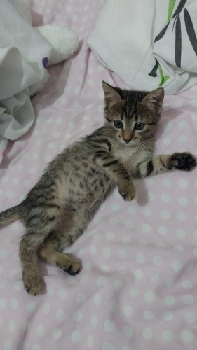 Bahçede bulduk ağlarken vitaminlerle toparlandı ve şimdi kucaktan inmiyor her insana ve her kediye yanasiyor çok sevecen. İç ve dış parazitler yapıldı sahiplenecek olanları çok mutlu edecek bir yavru