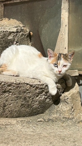 İlginç sarı beyaz bir gözü sarı bir gözü mavi kuyruğu kısa. Doğuştan yada kaza ile kopmuş olabilir. Çok oyuncu ve masum . Yaşadığı yer çok soğuk kış geliyor açlıktan ve soğuktan ölmemeli acil sıcak bir yuvaya ihtiyacı var. Kim özel bir cana sahip olmak ister.