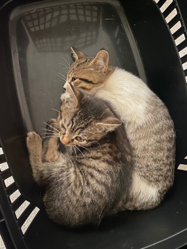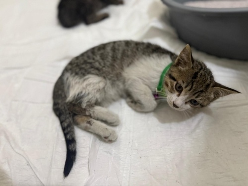 Bu 2 yavru sopayla dövülmüş ve kalçasında kırıkları var iki yavrununda küçük oldukları için tedavisi yapılamıyor sadece kendi kendine iyileşeceklermiş. (Birkaç ay içinde kırıklar kaynayacakmış)mama ve su içiyorlar ancak hareket edemiyorlar ş an geçiçi evde kalıyorlar