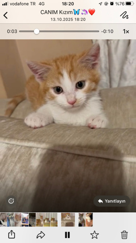 1 hafta önce sokağımızda arabanın altında ağlarken buldum sokakta bıramadım belki ona güzel bir yuva bulurum diye korumaya aldım evimde 5 tane büyük kedi var bu yavruyu Takip şartıyla sahiplendirmek istiyorum ona çok güzel bakacak sevgisini verecek onu bir evladı gibi koruyacak ailesini arıyorum 1,5 aylık dedi veteriner iç dış aşılarını yaptırdım erkek