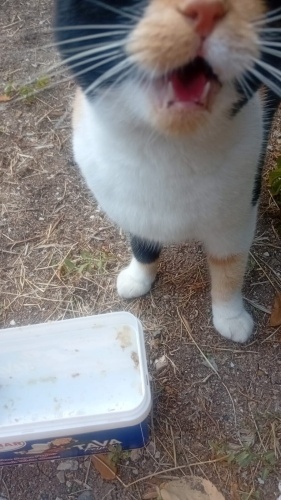 Bu tatlı hanımefendi sokağa terk edilmiş. Alışık olmadığı için çok korkuyor. En küçük ses veya harekette tedirgin oluyor. Çevredeki duyarlı yurttaşlar bilindiği için yaklaşık 1 hafta önce bulunduğu yere terk edilmiş olabilir. İlk günler yemek yemiyordu. Bulunduğu kısıtlı bir alanı terk etmiyor ve diğer kedilerden uzak duruyor.