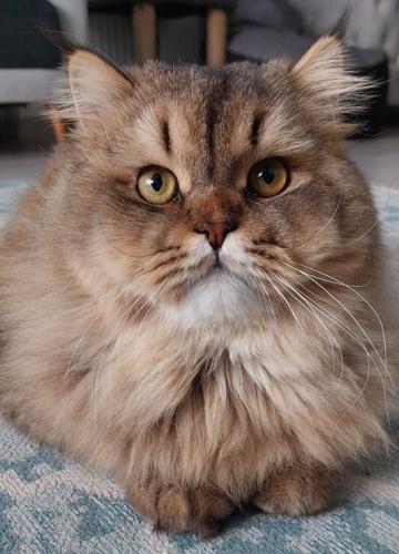 2 yaşında, kısır, muhteşem tüyleriyle tam bir British Longhair beyefendisi. Sessiz, sevecen ve insanlarla vakit geçirmeyi seven bir karaktere sahip.