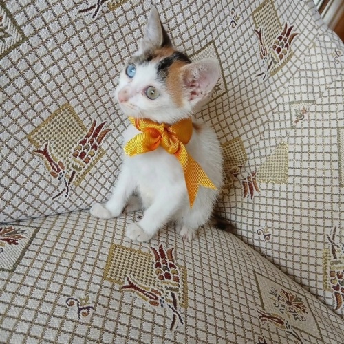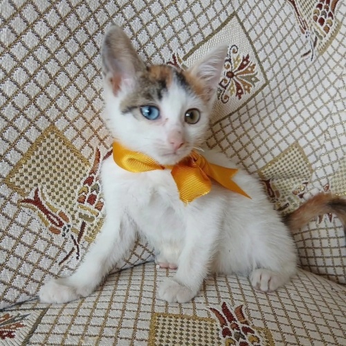 Çok sevimli ve evcil minikler 🐱 2aylıklar...2 dişi , 1 erkek... Bir göz mavi,bir göz yeşil iki bebeğin.
