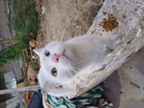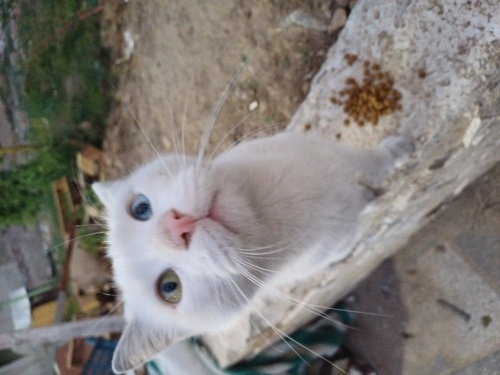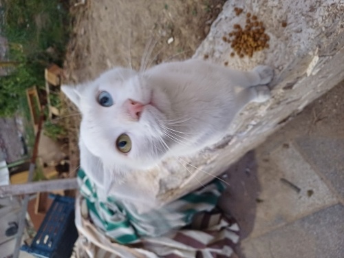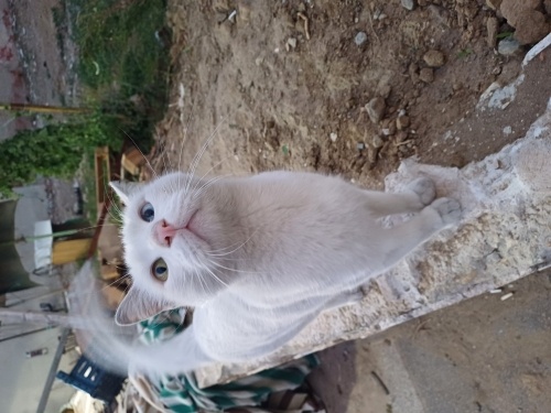 Aslan ne yazık ki şu sıralar sıkça karşılaştığım gibi sokağa terkedildi ilk tetkedildiginde bembeyaz insana fazla yaklaşmayan kiloluydu şimdi artık sokakta kalıcı olduğunu anlayınca yemek için arkamdan koşuyor hergun yolumu gözlüyor asil adam yemek seciyordu kuru mama yemiyordu ama açlık seçici olmasını artık engel kuru mamada yiyor epey kirlendi ilk haline göre zayıfladı yani gözümün önünde bir cins ev kedisinin sokakta geçirdiği evrimi görüyorum lütfen bu asil oğlana tekrar sıcak yuvasınızi acabilirmisiniz çok güzel çok karizmatik daha fazla sokakta yasamasin nakil konusunda yardımcı olurum