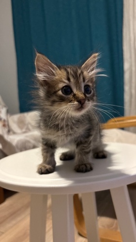 Bir karton kutu içinde yağmurun altında sokağa terk edilmiş 3 küçük yavrudan biriydi, sokak kedisi bir süt anne ile büyüdü. Şuan 1.5 aylık, dişi, kuru mama yiyebiliyor, tuvalet eğitimi aldı. Oyuncu, sevecen, iç ve dış parazit uygulandı. Ömürlük yuvasını arıyor. Aşılarını yaptıracak, ilerde kısırlaştırması sağlanacak sıcak bir yuva aramaktayız❤️