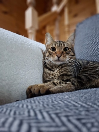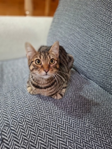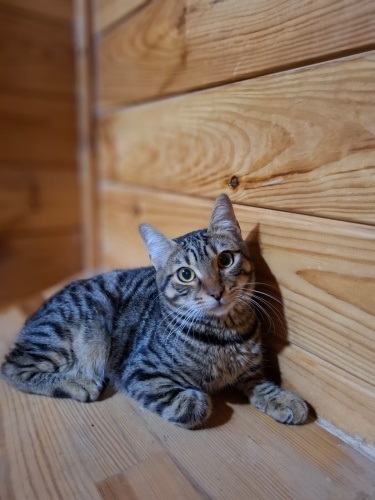 6 aylık ve erkek. sevgi dolu, her an gırlayan, sürekli kendini sevdirmek için can atan, ellerinize bacaklarınıza sürtünüp size göbekler açan bal gibi bi kedi.