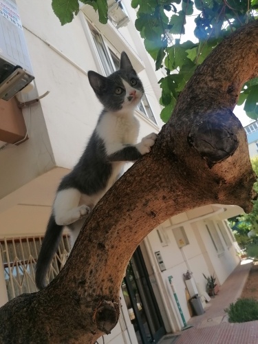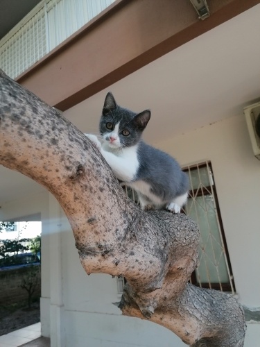 Gri beyaz rengi. Irk kedi gibi resmen. Bahçeme sesine çıktım ben onu bulmadan o bemim buldu ve resmen üstüme tırmandı. Banyoda konfor sağladık bakıyoruz ama evde üç kedim var ve strese girip biri maalesef ciddi hastalanıyor. O nedenle acil yuva arıyoruz.