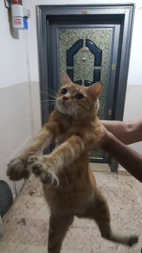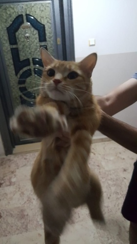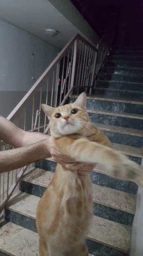Soğuktan korunmak için apartmanımıza girmiş sanırım. Çok seven uysal dost canlısı dişi sarman kedi. Hamile ve doğurmasına az kaldı. Havalar daha da soğumadan acil yuva bulması gerekiyor. Sokağa uyumlu bir yanı yok, ev kedisi eve uyum sağlar. Hiç bu kadar sakin sarman kedi görmedim. Tırmalamaz ısırmaz. Yer: Emek/Osmangazi/BURSA