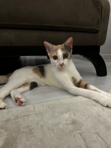 Yuki 5.5 aylık çok tatlı bir calico. Haziran ayında otobanda arabaların altından aldık. Tedavisi yapıldı şimdi çok sağlıklı. Tüm aşıları yapıldı (kuduz, lösemi, karma, iç-dış parazit) Sevgi dolu,temas bağımlısı bir kız. Oyun oynamayı çok seviyor.Tuvalet eğitimi var yuki ömürlük yuvasını arıyor