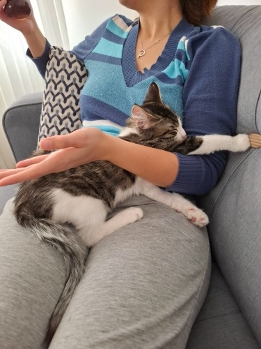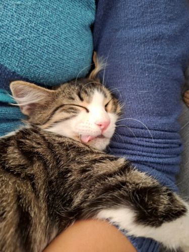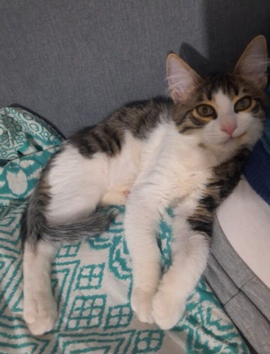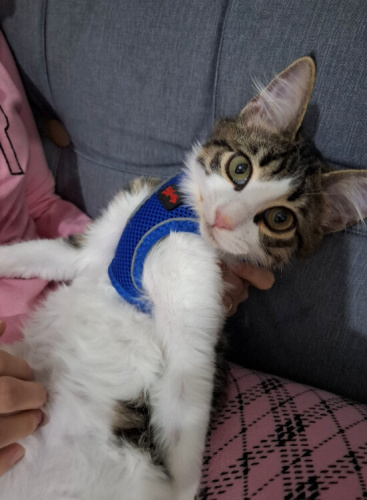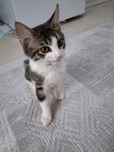 Atlattığı bir hastalık nedeniyle çenesi gülüyor gibi kaldı. Çok komik bir surat ifadesi var. Çok oyuncu ve sevecen. Tırmalamayı bilmiyor, ısırmayı da emmeye çalışırken yapıyor sadece. İç dış parazit aşıları var. Dışarıya çıkarıp gezdirebiliyoruz bile. Gayet güzel tatlı bir çocuk. Ankara içi takip şartıyla ücretsiz sahiplendirilecek.