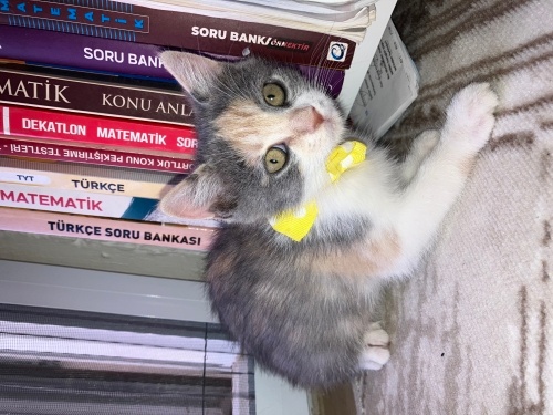 3 aylık yavru dişi, evde doğdu çok ürkek sokakta yapamaz , kum eğitimi var, kısıraştırılmamış