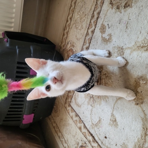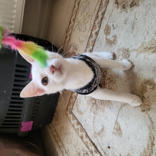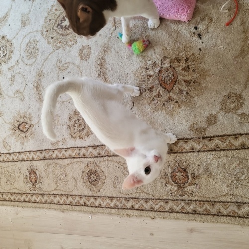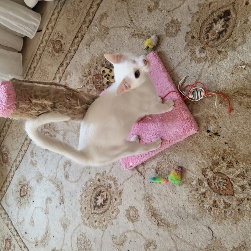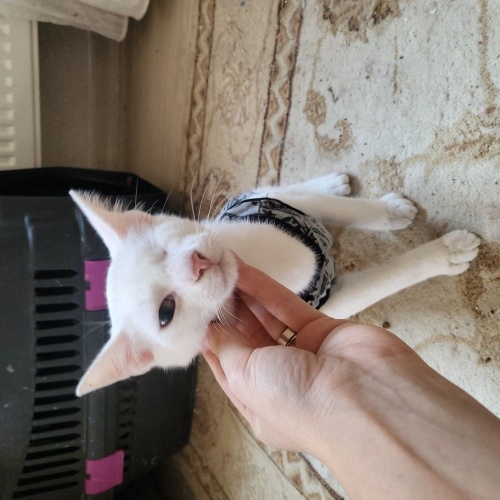 1 aylıkken kötü halde bulup tedavi ettirdigim bir can. 1 gözü alınmak zorunda kaldi ama bu hicbirseyine engel değil🙏🏼. Aksine aşırı mırmır sevgi dolu bir kedi. Oyuncu 5.5 aylık bir erkek. Kuru mama yiyor yaş mama ödül maması çok seviyor. İlgi delisi, yumuşacık bembeyaz tüyleri var. İç/dış parazitleri yapıldı. Herhangi bir sağlık problemi yok. Onu ömürlük sevicek ailesini arıyorum. Küçük çocuklu ailelere cocuklarini eglendirmeleri icin kedi aldıklarindan sahiplendirme yapmiyorum. Lütfen kesin sahiplenmek isteyenler mesaj atsın( muğla-izmir arasi sahiplendirme yapabilirim) takip şartli sahiplendirme yapmaktayim, sahiplendirdikten sonra kedinin durumu hakkinda sizden bilgi almaya devam edicem. Sahiplendirdigim her canin durumunu sürekli olarak takip ederim. [Kendimde veteriner teknikeriyim .]