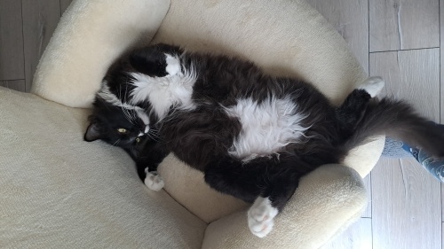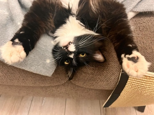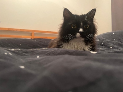 Erkek 2 yaşında, büyük ihtimalle Norveç Orman kedisinin ırkından geliyor. Biraz iri bir çocuk. Bir önceki sahipleri taşındıkları için sahiplendirmek istiyorlar. Aşırı sevecen ve oyuncu bir kedi. Hiç sokak görmediği için ona bir yuva arıyoruz. Kısırlaştırılmıştır. Peluş oyuncak gibidir, geceleri sarılarak uyumayı çok seviyor. Küçük çocuklu veya bebekli evler için uygun bir kedi değildir çok oyuncu olduğu için önlem amaçlı belirtilmiştir