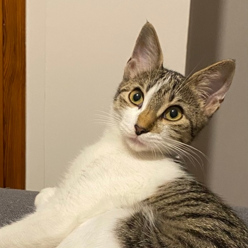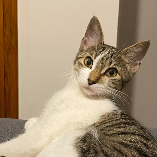 on yedi haziran’da çöplerin arasında tek başına bulunup korumaya alındı ve artık beş aylık oldu… dişi, hırçınlığı yok, sevgi dolu, yetişkin kedilerle uyumlu… bebekliğinde bacağı kırılıp kaynamış, röntgen çekimleri mevcut, engeli yok, sadece sol arka bacağını açarak oturuyor… klinik kontrolde iç dış parazit uygulamaları yapıldı, kum alışkanlığı var 🧶