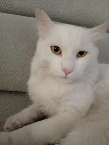 Beyaz 1 yaşına yeni girdi. Aşıları var. Kum eğitimi var. Aşırı sevgi dolu ve asla ısırmaz ve ya tırmalama huyu yoktur. Van kedisi özelliklerini taşıyor. Ona gözü gibi bakacak bir aile arıyoruz. İzmit.